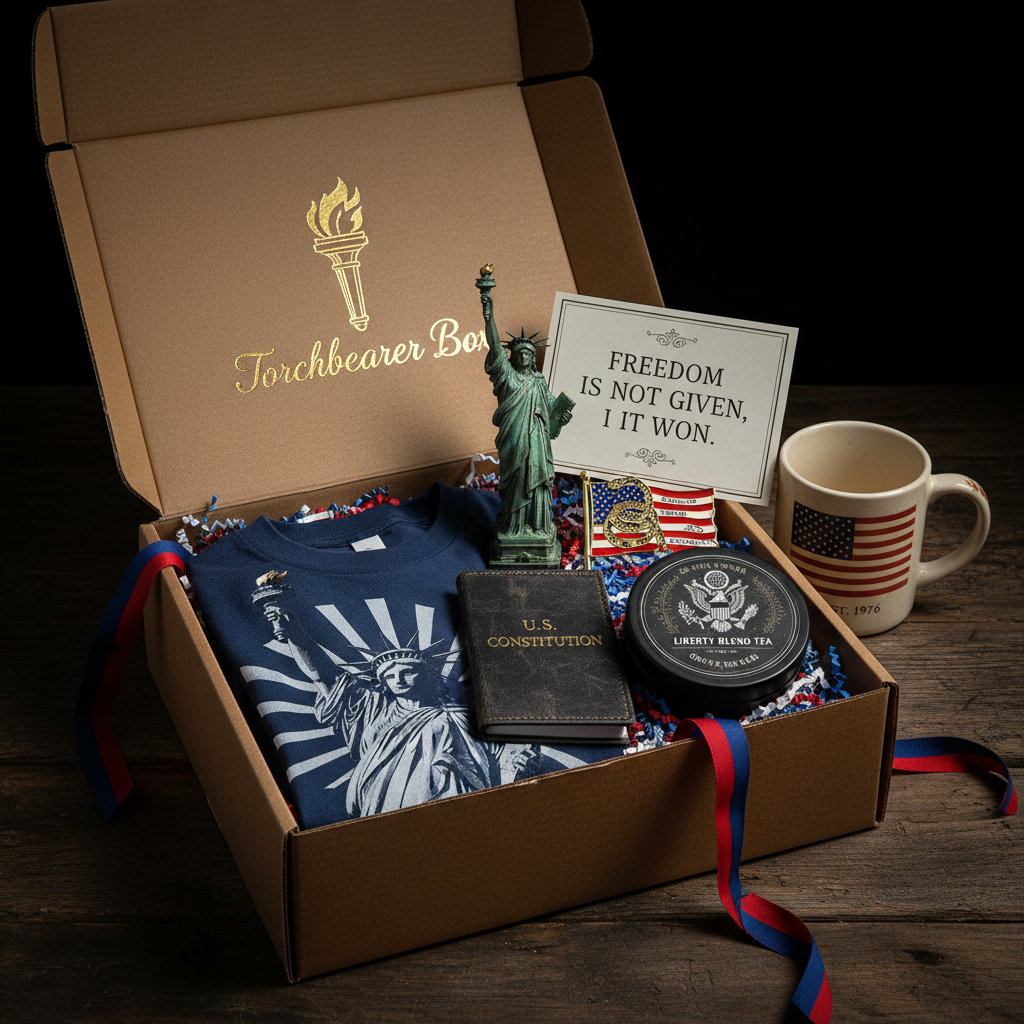 Every month, receive a curated collection of patriotic gear that celebrates faith, freedom, and family.